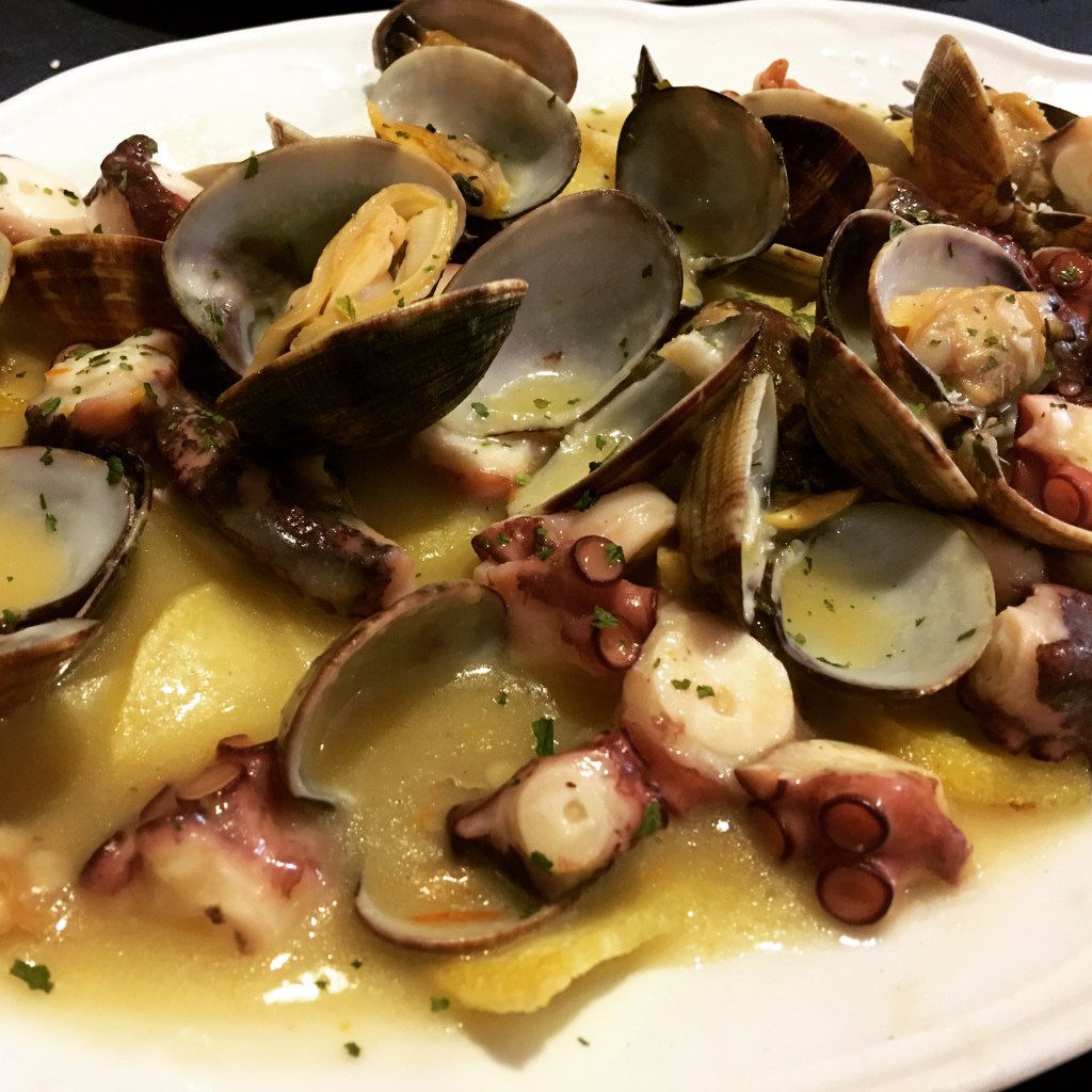 Claro está que podemos utilizar una almeja de menor calidad que podemos encontrar por 12-14€. El pulpo a veces lo he visto a 10€.